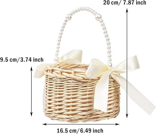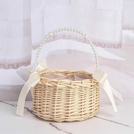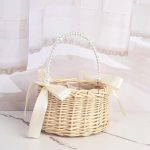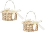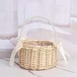 adet hasır rattan çiçek kız sepeti çiçek sepeti kulplu ve fiyonklu çiçek sepeti düğün çiçekleri için örgü sepet (şerit A)