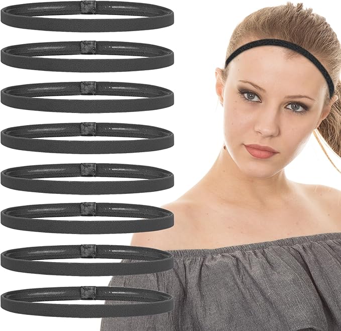 Adet İnce Spor Elastik Saç Bantları, Siyah İnce Saç Bantları, Kaymaz Silikon Tutuşlu, Erkek, Kadın Uzun Saç, Yoga, Basketbol, Futbol, Tenis için Atletik Saç Bantları