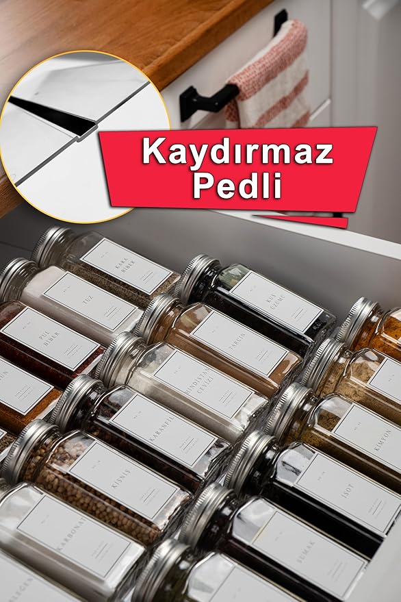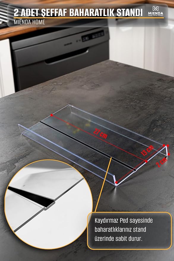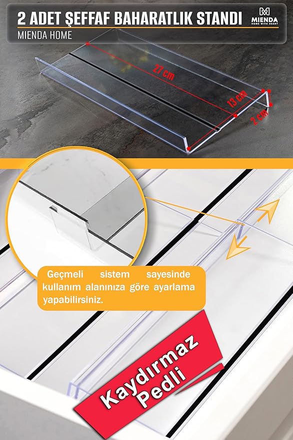 Adet Kaydırmaz Pedli Şeffaf Stand Baharatlık Standı Çekmece Içi Düzenleyici Mh.ydk.plx2
