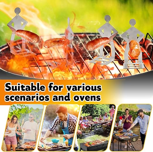 Komik Barbekü Aksesuarları Tasarımı: Komik şekillere sahip bu sosisli sandviç sosis standı tutucusu, kamp veya arka bahçe ateş çukuru toplantıları için mükemmel, dış mekan pişirme kurulumunuza bir yenilik dokunuşu getirir.