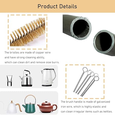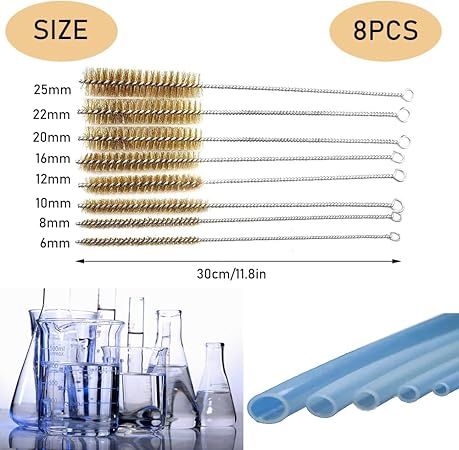 ❤️ 【Set içeriği】 8 adet. Pirinç boru fırça boyutu: 6, 8, 10, 12, 16, 20, 22, 25 mm, kıl uzunluğu 12 cm, toplam uzunluk 30 cm, daha küçük çaplı pirinç tel fırçalarımız var, böylece küçük borularla kolayca yüzleşebilirsiniz.