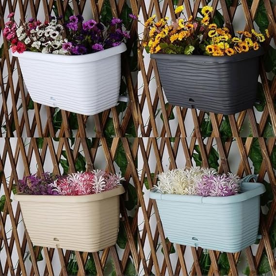 Paket İçeriği 4 Adet Poliwork Nergiz Kolay Askı Balkon Saksısı 40 cm 6.5 lt Renkler: Antresit, Kahverengi, Yeşil, Beyaz