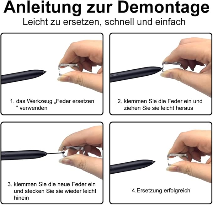 Montaj/Sökme: Yedek uç seti, ucu çıkarmak ve yedek ucu kalemin içine yerleştirmek için kullanılabilen bir pense içerir ve S Pen uçların değiştirilmesini tamamlar