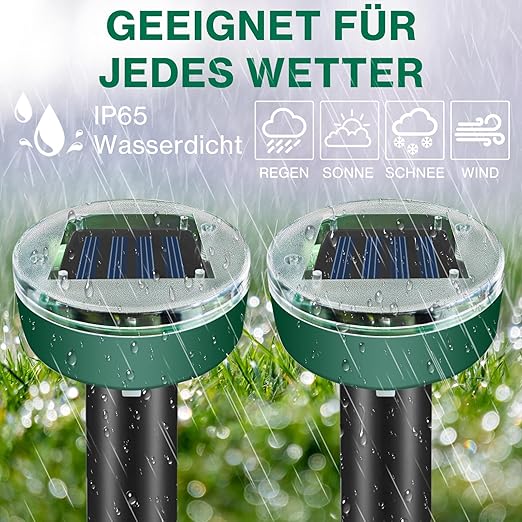 【Su geçirmez ve uzun ömürlü】 Köstebek kovucu yüksek kaliteli ABS ve PVC malzemelerden üretilmiştir, açık havada uzun süre kullanılırsa kolay aşınmaz. Solar köstebek kovucu su geçirmezdir ve yağmurdan korkmaz, böylece yağmurda hayvan kovucu kullanımı konusunda endişelenmenize gerek kalmaz.