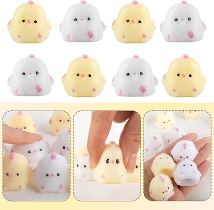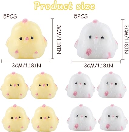 Paket içeriği: Bu 8 taba squishy tavuk seti, 4 sarı ve 4 beyaz karışımında sevimli bobo tavuk tasarımlarına sahiptir. Fufu squishy oyuncaklarımız koleksiyon, sergileme ve eğlenceli bir duyusal deneyim sağlamak için iyidir. Hem çocuklar hem de yetişkinler için mükemmel olan bu mini oyuncaklar stres azaltma ve anksiyete yönetimi için harika stres oyuncakları yapar.