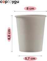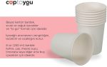 8 oz (250 ml) beyaz karton bardak 245 gsm’lik yüksek kaliteli kartondan yapılmıştır ve 90°С’ye kadar sıcaklığa dayanıklıdır. Ellerinizi yakmamak için bir seferde 2 veya 3 bardak kullanmanıza gerek kalmayacak!
