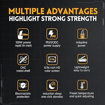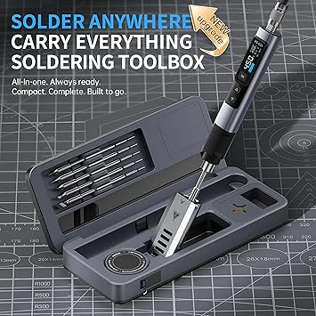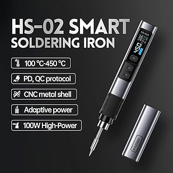 HS-02 Intelligent Soldering Iron with Portable Soldering Toolbox Highlights ✦ Light weight, easy to carry✦ Power adjustable