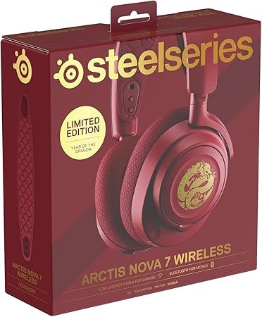 Arctis Nova 7 Kablosuz – Çoklu Platform – Oyun Kulaklığı – Dragon Edition – 2 Set Hoparlör Kapağı – Çift Kablosuz 2,4 GHz/Bluetooth – 38 Saat Pil – PC, PS, Mobile, Anahtar