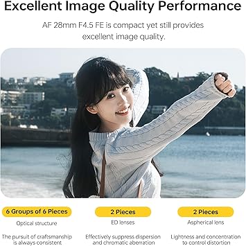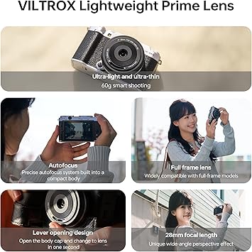 Viltrox AF 28mm F4.5 XF Fuji X Mount için bir AF Full-Frame objektiftir, 28 mm odak uzaklığı benzersiz geniş açılı perspektif ve perspektif efekti ile kendini gösterir, ağırlığı sadece 60 g ve sadece 15,3 mm kalınlığındadır. ED ve asferik elemanlar net ve canlı görüntüler sağlarken, benzersiz ön eleman harika starburst efektleri oluşturur. Hareket halindeyken çekimler için mükemmel bir seçimdir.