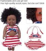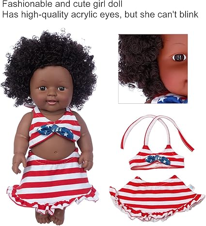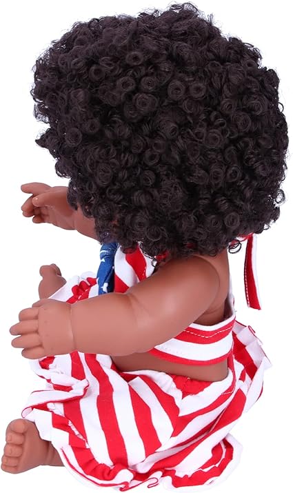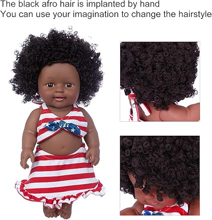 Modaya uygun ve sevimli bebek, yüksek kaliteli akrilik gözlere sahip ama gözlerini kırpamıyor. Siyah afro saç elle ekilir, saç stilini değiştirmek için hayal gücünüzü kullanabilirsiniz.
