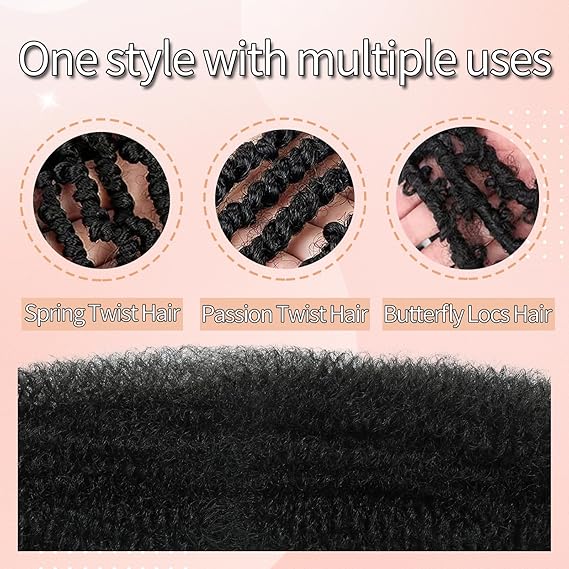 Saç avantajları: Kinky twist crochet örgüler önceden ayrılmış ve kabarıktır, kurulumu kolaydır, doğal dokuya sahiptir, dökülmez, hafif ve yumuşaktır, kolay dolaşmaz, uzun süre dayanır, koku yapmaz, cilt dostudur