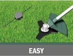 Büyük yüzeyler veya zorlu yabani çalılar için bıçak ile kesici misina arasında kolay değişim imkanı