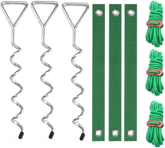 Genç Ağaç için Eksiksiz Ağaç Kazığı Kiti: ağaç istifleme kiti, kazıklama için 3 ADET ağaç kayışı, 3 spiral kazık ve ankraj için 3 halat içerir. Halatlar kullanım kolaylığı için 3 parçaya bölünmüştür ve hızlı kurulum için ayar mekanizmaları bulunmaktadır. Başka bir ilgili aksesuar satın almanıza gerek yoktur.