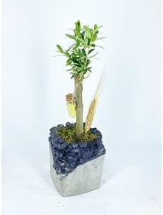 Ağacı Bonsai & Gri Siyah Lena Beton Saksıda Hediyelik Canlı Çiçek BALFLOWERDESİGN-2604