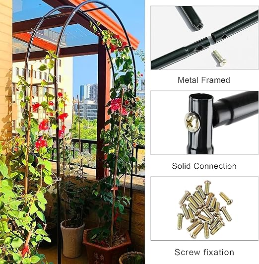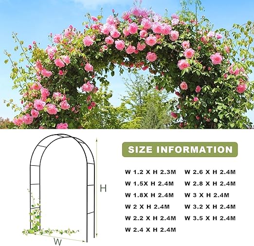 Ağır Hizmet Galvanizli Metal Bahçe Kemeri – Tırmanma Bitkileri ve Çiçekleri için Dayanıklı Siyah Gül Çardak Kafesi Mükemmel Ağ Geçidi Dekorasyonu (G 2,2 x Y 2,4 m)