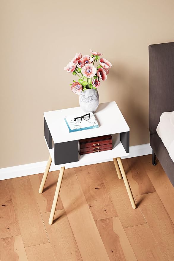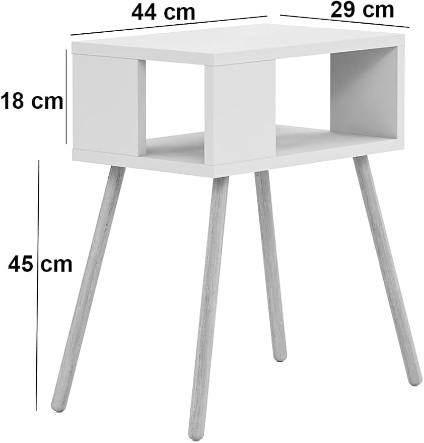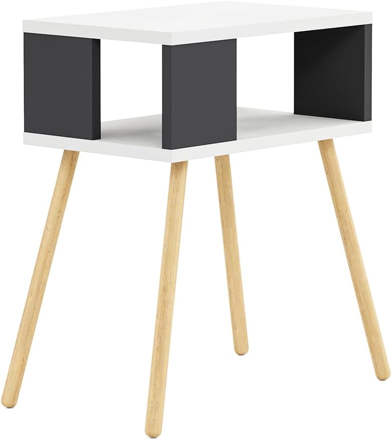 Ahşap Ayaklı Dekoratif Raflı Komodin – Beyaz – Antrasit Gri