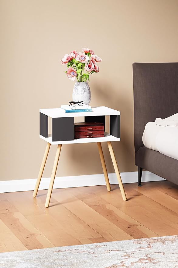 Ahşap Ayaklı Dekoratif Raflı Tek Renkli Komodin