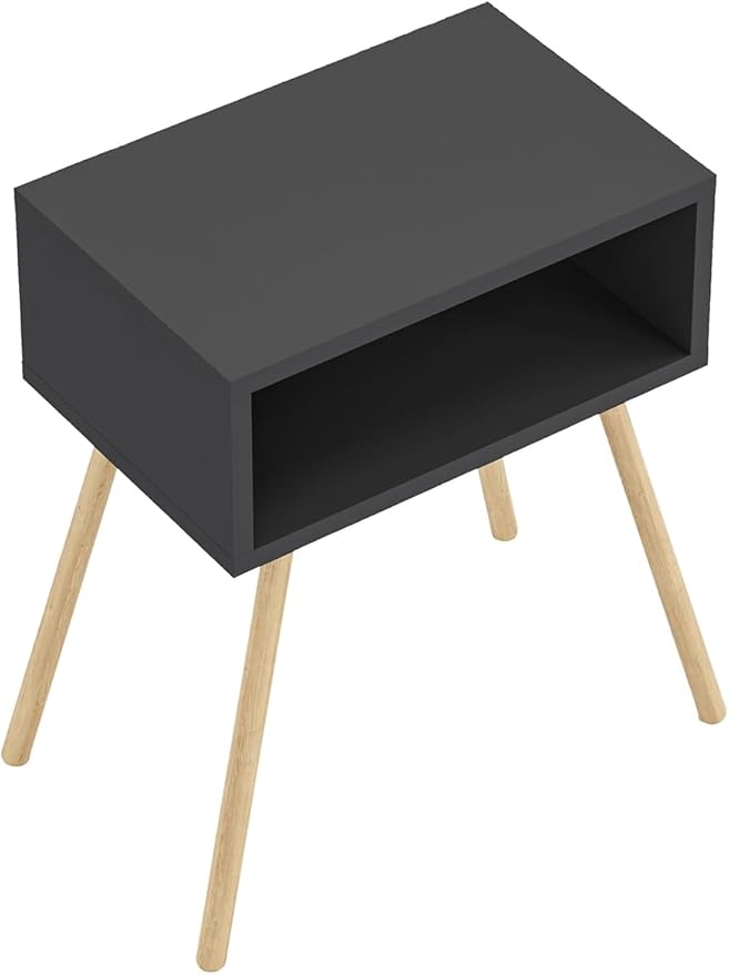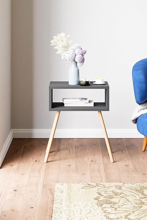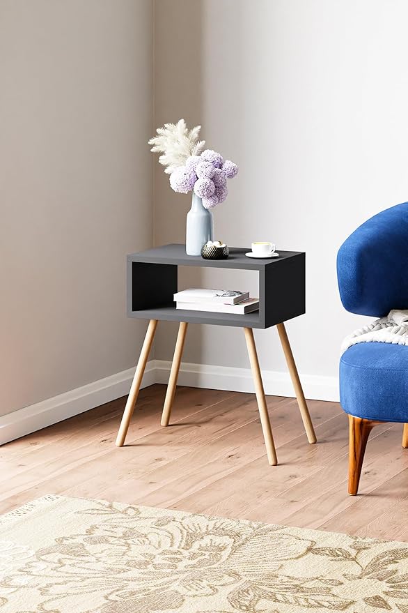Ahşap Ayaklı Raflı Komodin – Antrasit Gri
