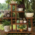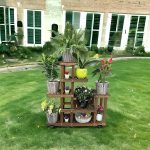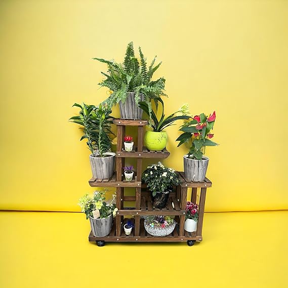 Ahşap (Çam) CEVİZ Renk 6 Katlı Bitki Standı, Kilitlenebilir Tekerlekler + Mini Bahçe Seti + My Bead Kokulu Mum 50 cc