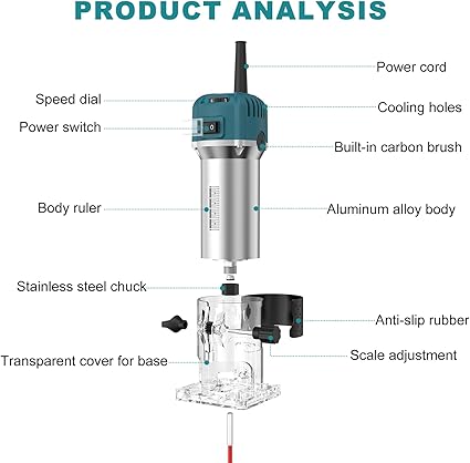 Kolay kullanım için ergonomik ve hafif tasarım: Elektrikli freze makinesi, uzun süreli kullanımda yorgunluk belirtilerini önlemek için ergonomik kauçuk sap, kaymaz ped ve hafif bir plastik gövde ile donatılmıştır – yeni başlayanlar ve profesyoneller için mükemmeldir.