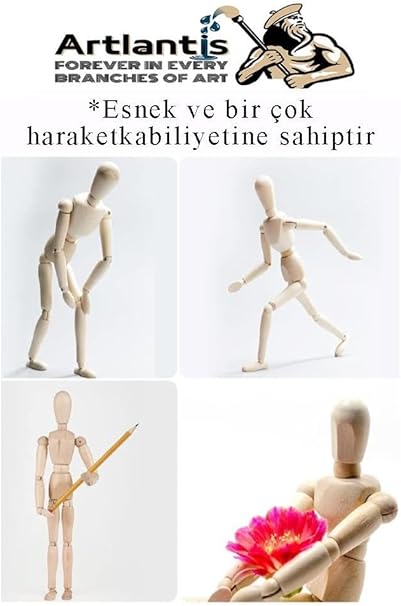 Ahşap İnsan Modeli 20 cm 1 Adet İnsan Figürlü Ahşap Model Manken Resim Ressam Eğitimi Tahta Adam Kukla Stilist