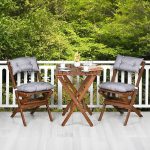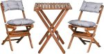 AHŞAP KATLANIR MİNDERLİ 3 lü BİSTRO SET MUTFAK BALKON BAHÇE MASA SANDALYE SETİ (CEVİZ-GRİ)