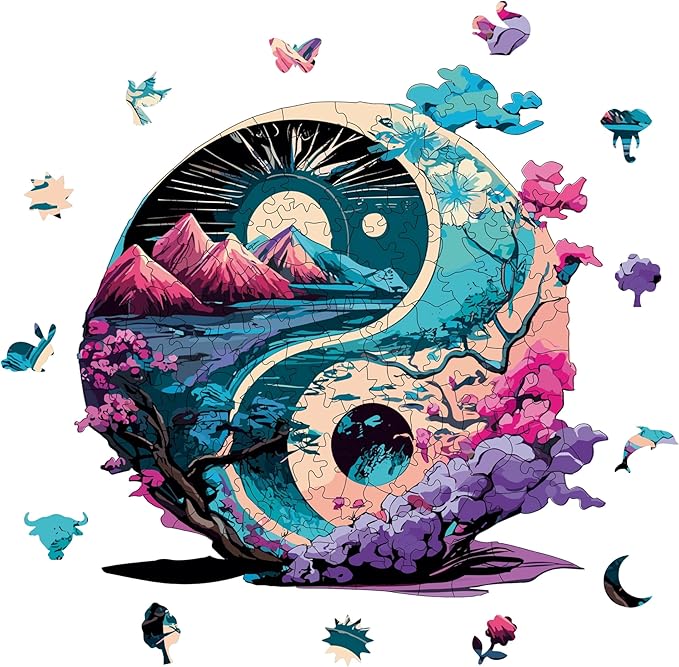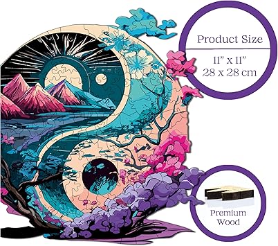 – Ahşap Puzzle Yetişkinler için – Yin Yang Benzersiz Parçalı Puzzle – 141 Parça Ahşap Yapboz – Yapıştırıcı Folyo Dahil – Dekoratif Ahşap Puzzle – 28×28 cm – WZ-12