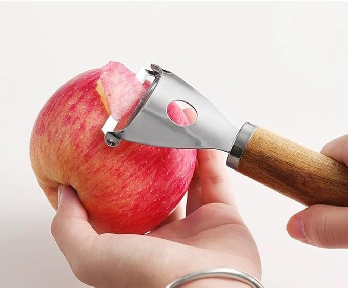 Ahşap Saplı Çok Fonksiyonlu Paslanmaz Çelik Patates Soyucu Meyve Sebze Soyucu, Pratik Elma ve Havuç Soyma Aleti