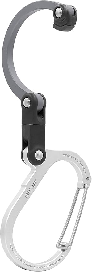 Aid HEROCLIP Karabina Dişli Klips ve Kanca (Orta), Kamp, Sırt Çantası ve Garaj Organizasyonu için, Gri Gölge