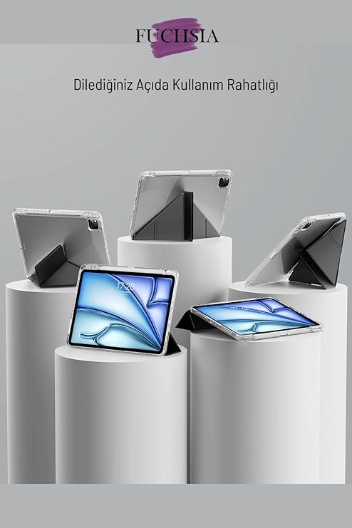 Air 11 İle Uyumlu 2025 M3 Kalem Bölmeli Standlı Tri Folding Fuchsia Tablet Kılıfı Lacivert