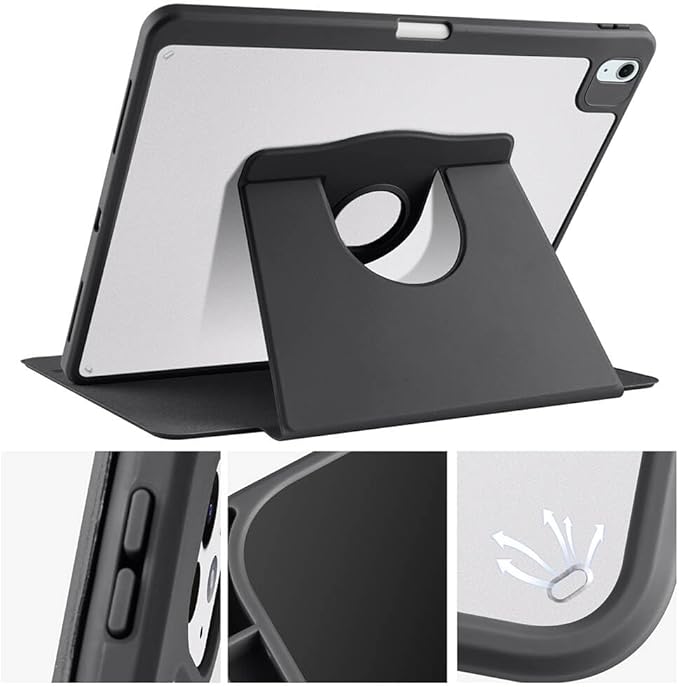 Air 13 2025 M3 Kılıf Silikon Kapaklı Stand Olabilen Kamera Lens Korumalı Kalem Bölmeli Kapak Siyah