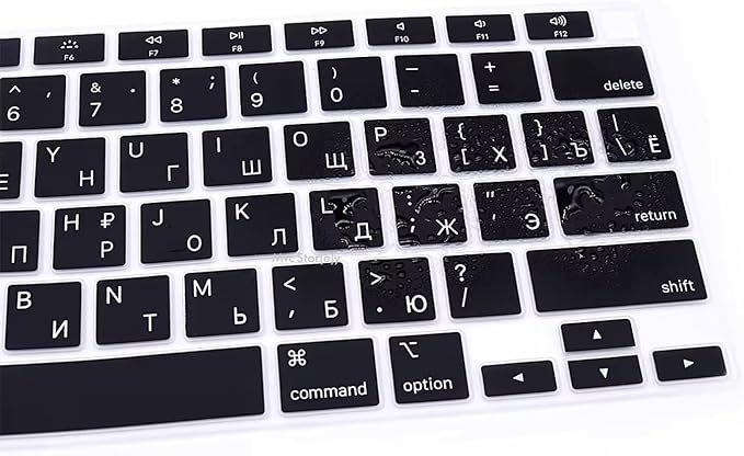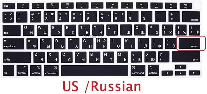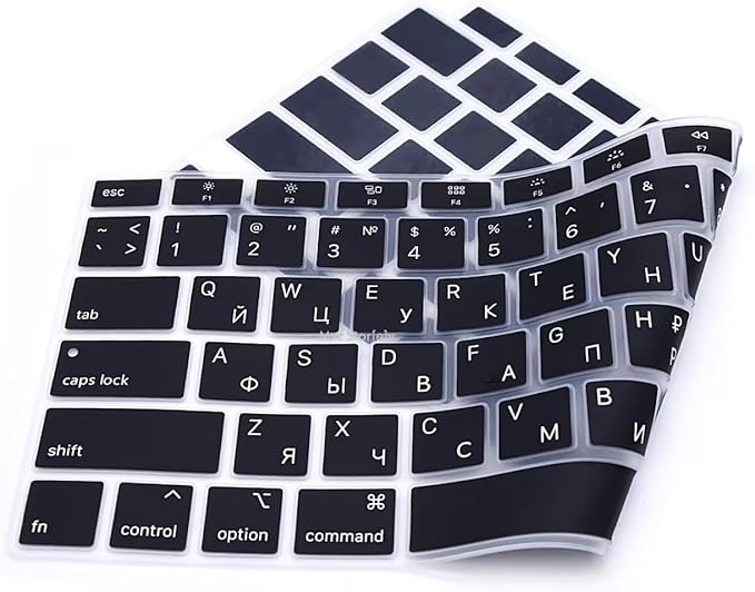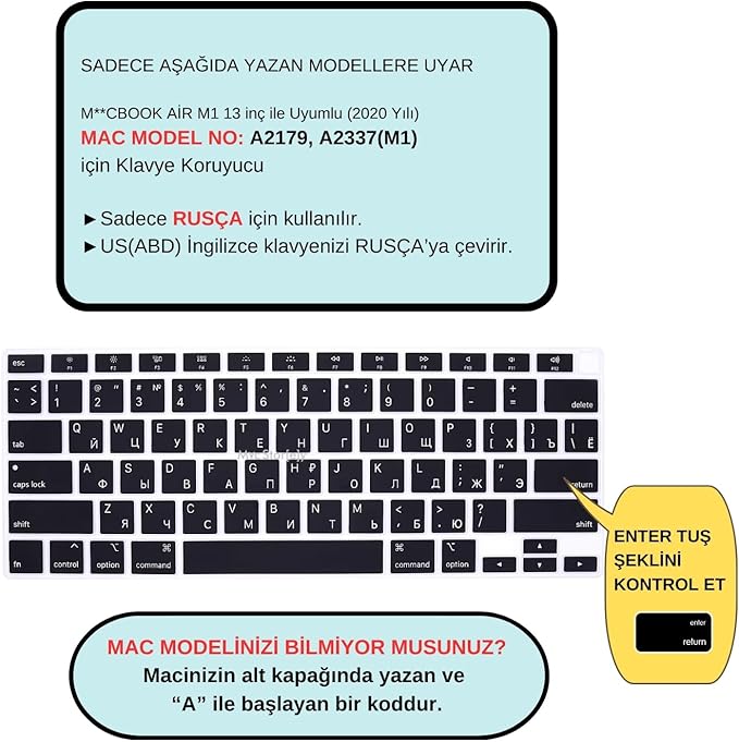 Air 13 inç Rusça Klavye Koruyucu – US Amerikan Klavye (Return Enter) – İnce Silikon – A1932 A2179 A2337 (M1) Siyah