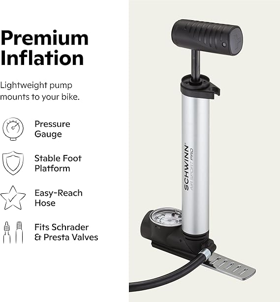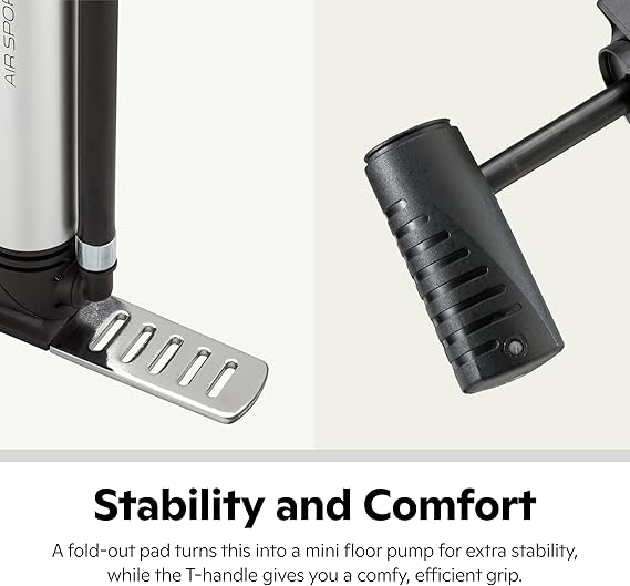 Air Sport Mini-Fahrradpumpe, Fuß-zu-Boden- oder Rahmen-Pumpen, mit Messgerät für Schrader- und Presta-Ventilarten