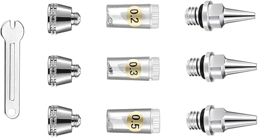 [Komple Fırçası Seti] Tüm gereksinimlerinizi karşılamak için sadece bir set. Bu kapsamlı airbrush kiti, 0,2 mm, 0,3 mm ve 0,5 mm boyutlarında bir yağ-su ayırıcı, yedek iğneler ve nozullar, eksiksiz bir temizleme kiti ve daha fazlası ile donatılmıştır. Ek aksesuarlara ihtiyacınız var