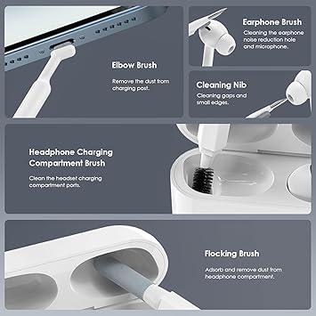 【Airpod ve Kulaklıklar için Temizleme Kalemi】 – Metal uçlu temizleme kalemi, kulaklık çatlağı ve deliği arasında gizlenmiş yapışkan ve sert kirleri derinlemesine temizler; Peluş fırça, kulaklık ağındaki toz çubuklarını temizler; Yumuşak fırça ve sert fırçayı temizleyen şarj deliği, ulaşamadığınız derin deliklerde gizlenmiş tozu ve kiri temizler, ayrıca iPhone, iPad, Telefon şarj bağlantı noktalarını ve hoparlörlerinizi temizlemek için kullanabilirsiniz. Yukarıdaki aksesuarlar için kullanımı kolaylaştıran bir uzatma çubuğu vardır.