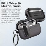 Airpods Pro 2 ile Uyumlu Fabric Serisi Özel Kilitli Tasarım ve Kumaş Yüzeyli Kılıf Darbelere Karşı Koruyucu Kapak (Airpods Pro 2)