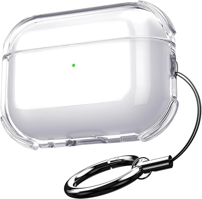 Airpods Pro 2 ile Uyumlu Ultra Şeffaf Silikon Kılıf Darbe Emici Köşeler ile Mükemmel Koruma ve Yüksek Kaliteli Taşıma Karabinalı (Şeffaf, Airpods Pro 2.Nesil)