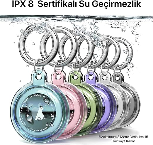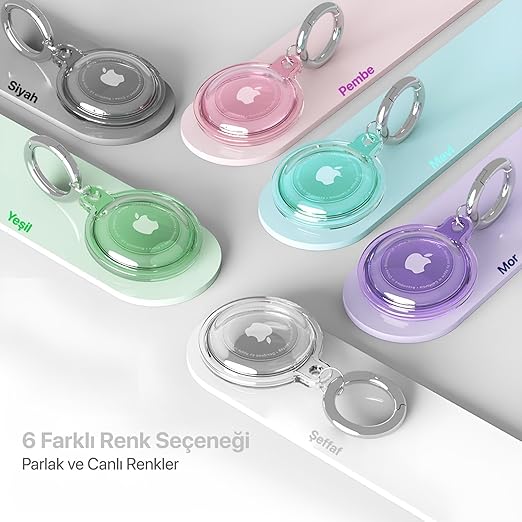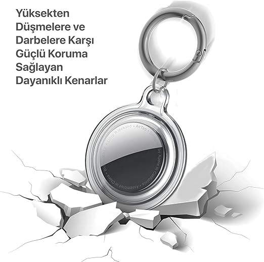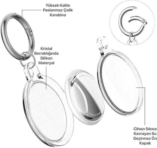 Airtag için Su Geçirmez Ultra Şeffaf Görünümlü Silikon Kılıf ve Anahtarlık (Şeffaf)