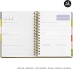Uzun ömürlü ve pratik: Lamine karton kapak, Wire-O bağlama ve konfor ve düzen için elastik kilit. 100 g/m² FSC Mix Credit kağıdı rahat, çevre dostu bir yazı yazmayı mümkün kılar. Çok dilli: İngilizce, İspanyolca, Portekizce, İtalyanca, Fransızca ve Katalanca.