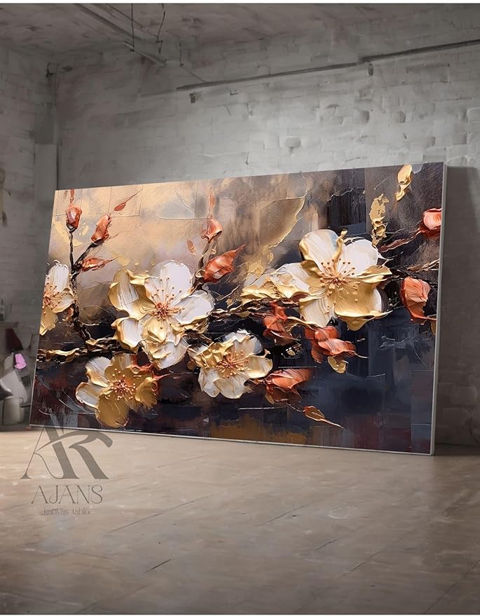 Ajans Kanvas Tablo Çiçek Açan Dalın Ahengi Yağlı Boya Görünümlü Dekoratif Ofis Koridor Salon Oturma Odası Kanvas Tablo 80 X 120