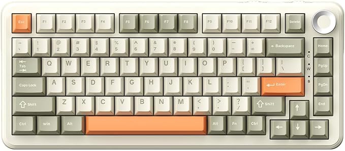 Ajazz Ak820 Max 8000mAh Batarya, Dinamik RGB, Hot-Swap 3 Modlu Mekanik Klavye Oyun Klavyesi, Bluetooth / 2.4g Kablosuz/Type-C Kablolu (AK820 Max – Cream Orange – Flying Fish Switch)