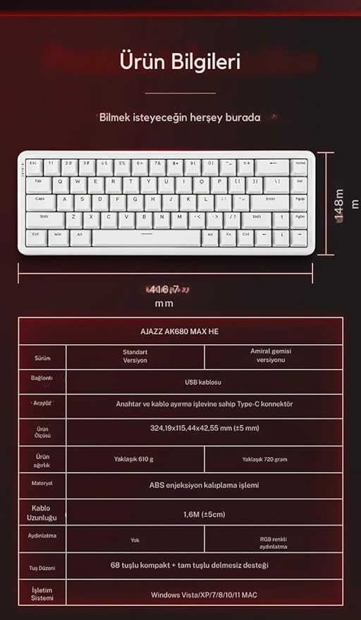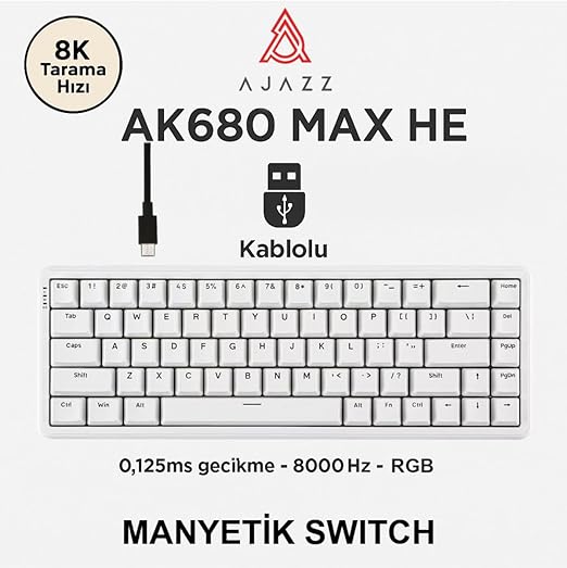 AK680 Max HE Kablolu Manyetik Switch Klavye – 8000Hz – 0.125Ms (AK680 Max HE – Beyaz)