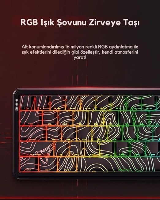 [Kişiselleştirilmiş Bir Kurulum için Canlı RGB Aydınlatma] AJAZZ AK680 MAX Flagship Edition özel klavye, masanızın estetiğini yükseltmek için çarpıcı güneye bakan RGB aydınlatmaya sahiptir. Tamamen özelleştirilebilir aydınlatma efektleri ve yan baskılı veya üst baskılı efsanelere sahip dayanıklı ABS çift vuruşlu tuş başlıkları ile bu klavye, tarzınıza ve tercihlerinize uyacak şekilde görsel çekiciliği ve pratikliği dengeler.