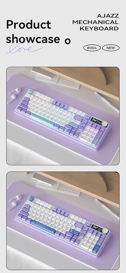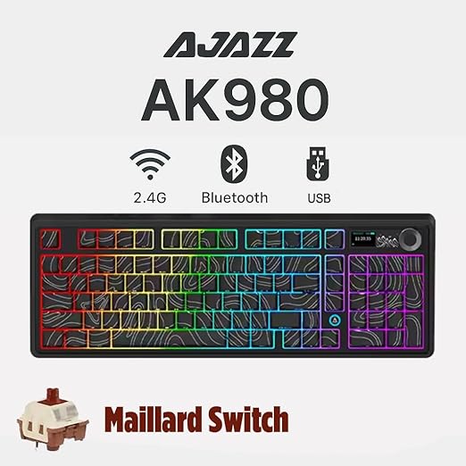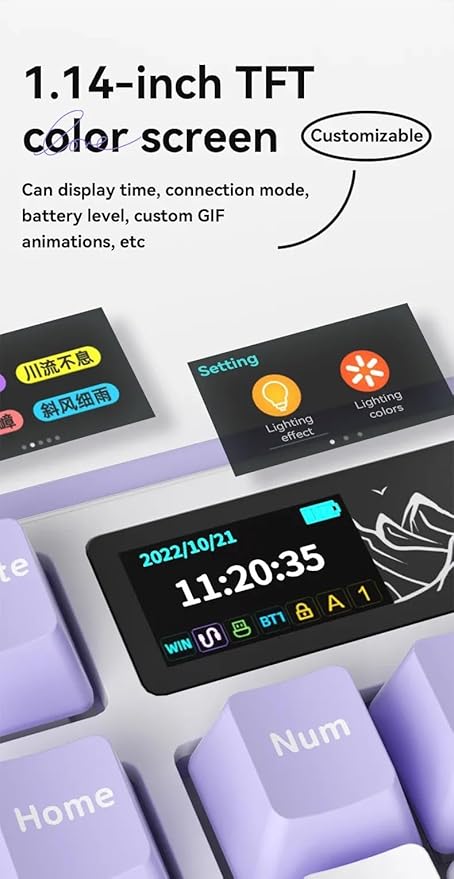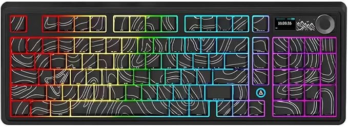 [Yenilikçi 1,14 inç TFT Renkli Ekran] AJAZZ AK980’in yenilikçi 1,14 inç TFT renkli ekranı ile oyununuzun zirvesinde kalın. Bu canlı ekran yalnızca zamanı ve bağlantı modunu göstermekle kalmaz, aynı zamanda pil seviyelerini de gösterir ve hatta özel GIF animasyonlarını destekler. Bir klavyeden daha fazlasıdır; sizi bilgilendiren ve eğlendiren masa arkadaşınızdır.