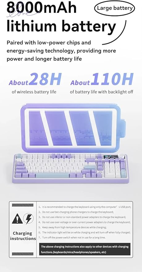 [Güneye Bakan LED ile Geliştirilmiş Pil Ömrü] AJAZZ AK980’in etkileyici 8000mAh pil ile eşleştirilmiş güneye bakan LED’i ile yazma deneyiminizi aydınlatın. Bu tasarım, kuzeye bakan kurulumlarda yaygın olan gölgelenme olmadan tuşların parlak, tutarlı arka aydınlatmasını sağlayarak en uzun çalışma oturumlarında bile uzun süreli aydınlatma ve görünürlük sağlar.