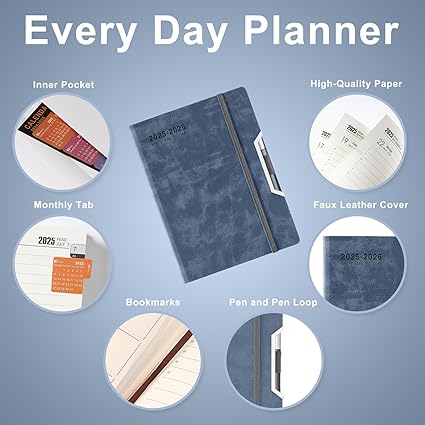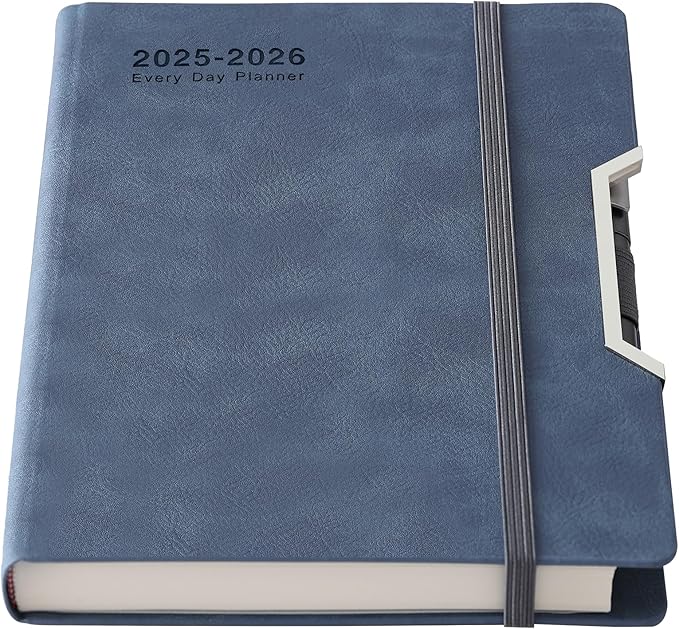 Günde bir sayfa – 2025-2026 için bu ajanda planlayıcı her sayfada bir günlük plan içerir. Minimalist ve dağınıklıktan arındırılmış zaman yönetimi, hedefler belirleme ve notlar, önce en önemli görevlere odaklanmanıza yardımcı olur. Her gün hafta numaraları ve gün sayıları içerir.