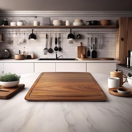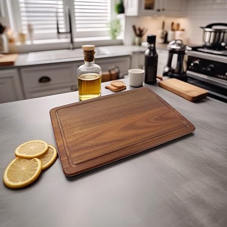 Yüzeyi pürüzsüz ve kaymazdır, kesim işlemlerinde güvenli bir kullanım sunar. Akasya kesme tahtası, bıçağınızın keskinliğini korur ve bıçaklarınızın daha uzun süre keskin kalmasına yardımcı olur. Mutfak tezgahınızda dekoratif bir görünüm sağlar ve mutfakta şık bir aksesuar olarak da kullanılabilir. Akasya malzemenin doğal ve çevre dostu özellikleri sayesinde sürdürülebilir bir tercihtir.