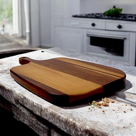 Yüzeyi pürüzsüz ve kaymazdır, kesim işlemlerinde güvenli bir kullanım sunar. Akasya kesme tahtası, bıçağınızın keskinliğini korur ve bıçaklarınızın daha uzun süre keskin kalmasına yardımcı olur. Mutfak tezgahınızda dekoratif bir görünüm sağlar ve mutfakta şık bir aksesuar olarak da kullanılabilir. Akasya malzemenin doğal ve çevre dostu özellikleri sayesinde sürdürülebilir bir tercihtir.