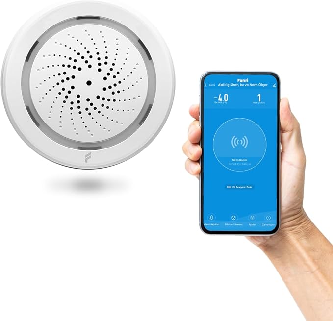 ✅ Yaşam alanlarınızdaki istenmeyen durumlarda yüksek sesli (105 dB) uyarı yapar, akıllı telefon ve tablet ile anında haberdar olabilirsiniz. Aynı zamanda ortamın sıcaklık ve nem takibini yapabilirsiniz.