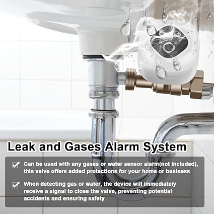 Sızıntı ve Gaz Alarm Sistemi: Herhangi bir gaz veya su sensörü alarmıyla (dahil değildir) kullanılabilir, bu vana eviniz veya işyeriniz için ek koruma sağlar. Gaz veya su tespit edildiğinde cihaz anında vanayı kapatmak için bir sinyal alarak olası kazaları önler ve güvenliği sağlar.